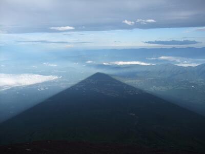 下の写真は、剣ケ峰から見た富士の影。
