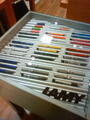 うおおお、これほどの LAMY のショーケースは見たことがない。これは楽しい。うちに 1 台欲しい。