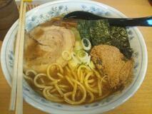 つけ麺は麺がうどん並みに太いようだったが、中華そばはそれほどでもない。 と言っても十分太い。つけ麺メインの店にありがちな、甘めのスープでドロドロしていたが、 意外とおいしくていけた。麺を2倍くらいまで同じ料金で頼めるようだった。