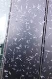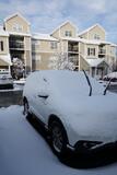ついに雪が降った。右は冷え込んだ朝の車だが、凍り方が見慣れない。きれい。