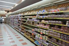 An ordinary supermarket's ordinary bread shelfs. What a lot!!